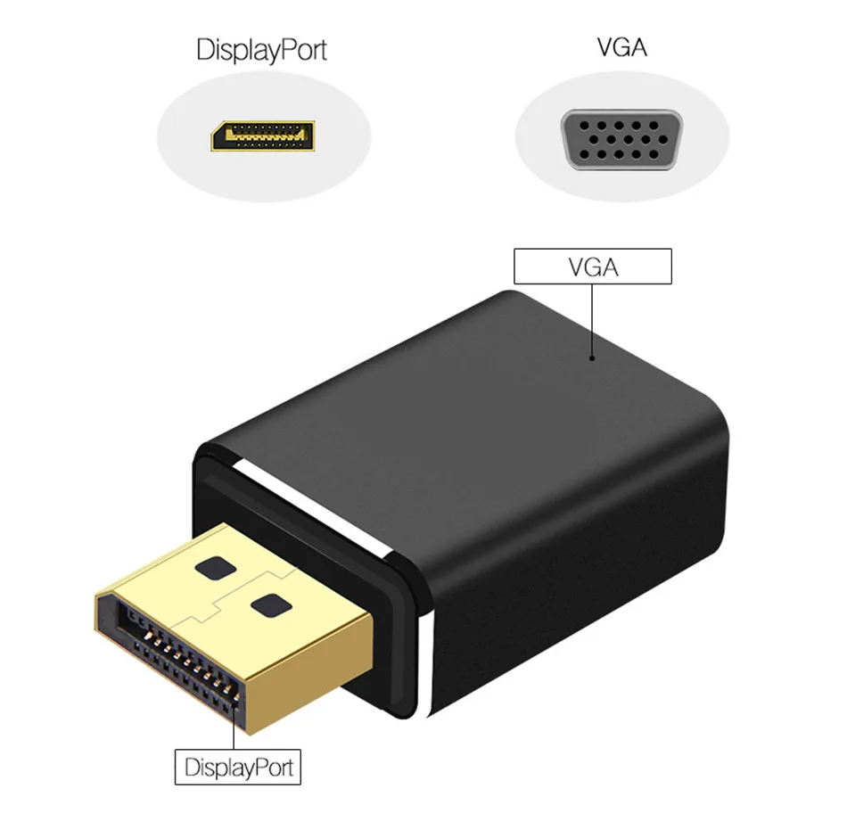 DP To VGA Adapter Display Port Connector Male To VGA Female Converters 1920*1080P for PC Computer Laptop HDTV Monitor Projector